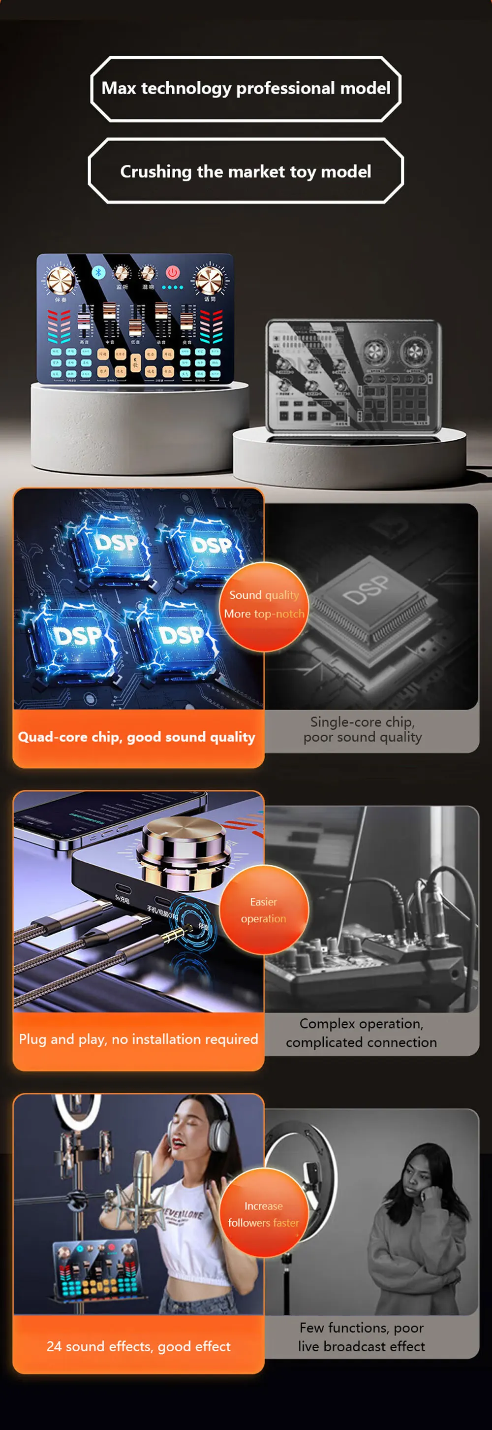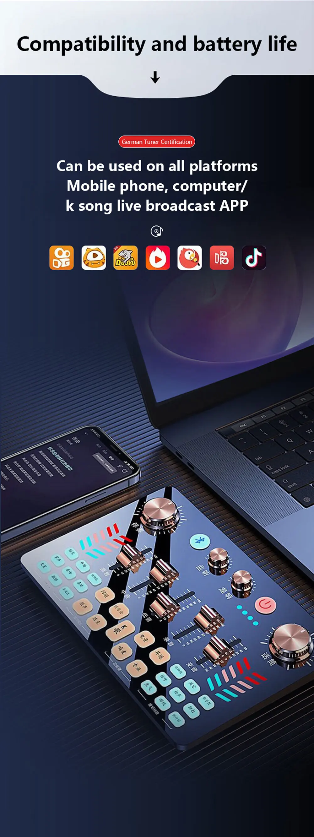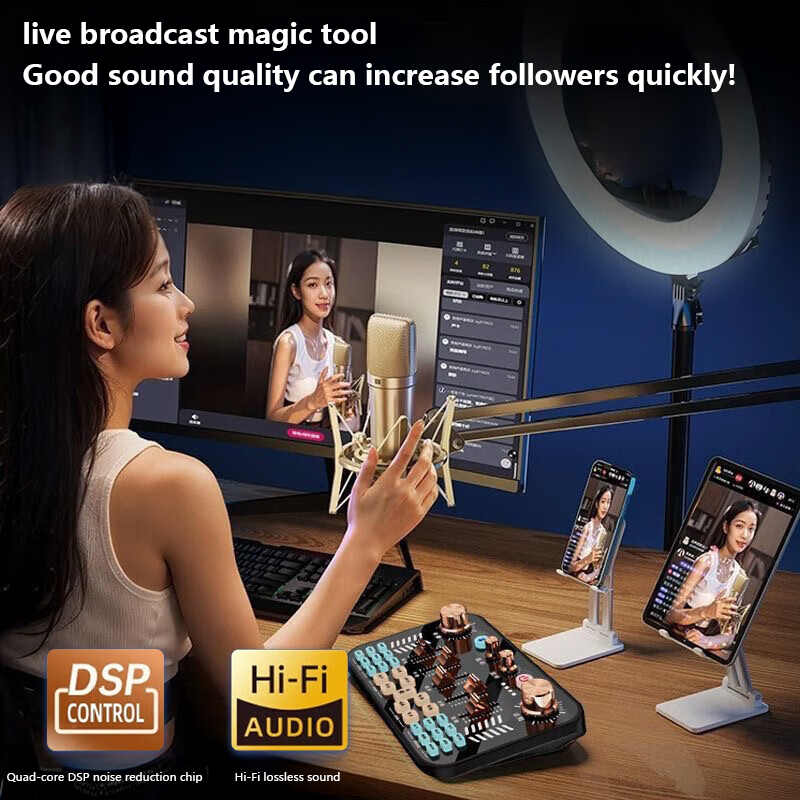 Computador Dedicado e Telefone Móvel | Conjunto de Placa de Som para Transmissão ao Vivo ao Ar Livre | Nova Placa de Som para Canto em Live (para Anfitriões de Live)