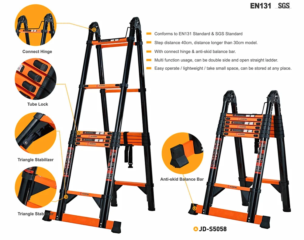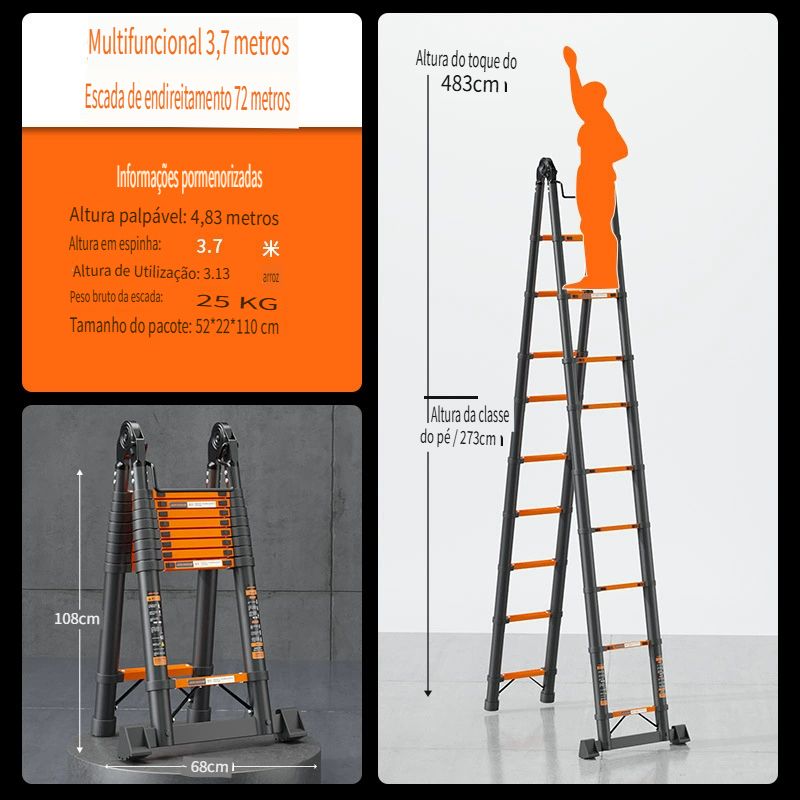 Pode ser dobrado com espaço pequeno e quando usar a escada, pode ser aberto para escada de lado duplo e escada reta.