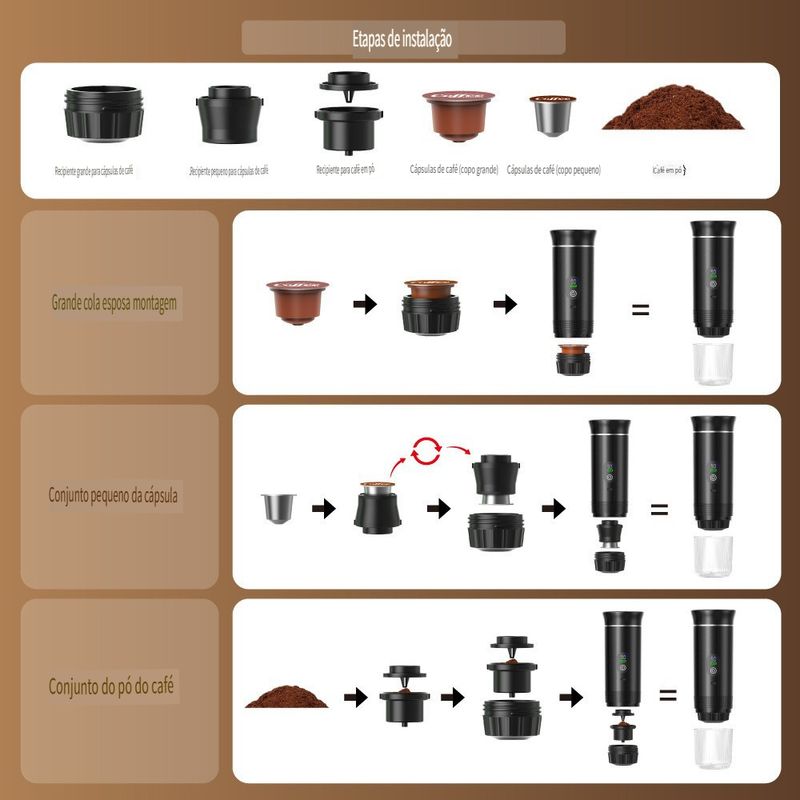 Máquina de Café Portátil Multifuncional Sem Fio com Aquecimento Automático para Cápsula Cold Brew para Uso Externo